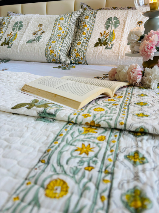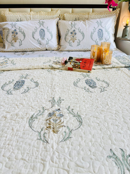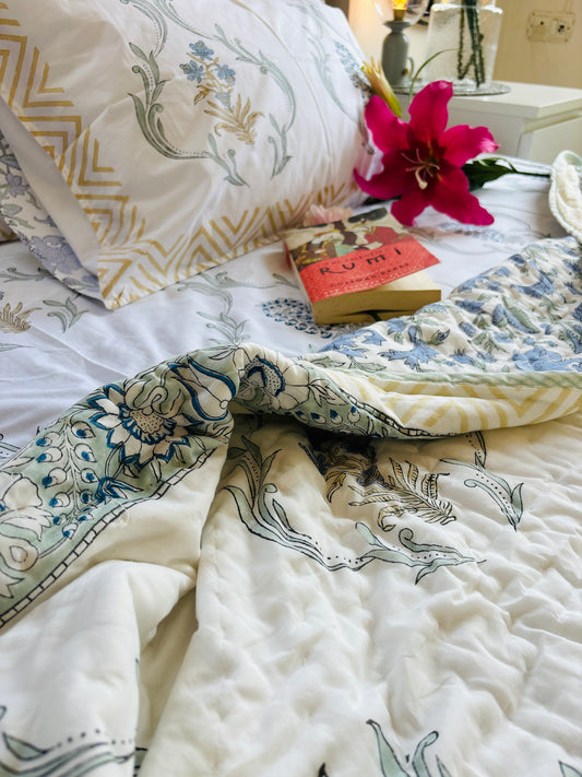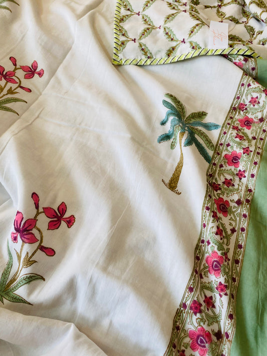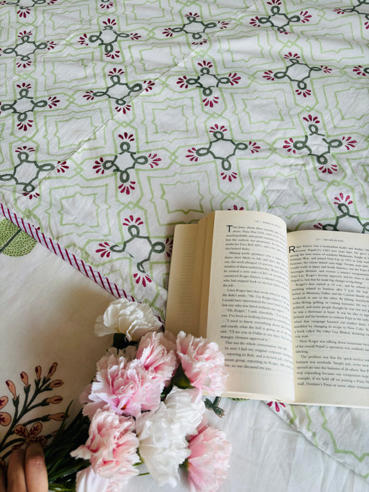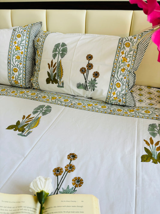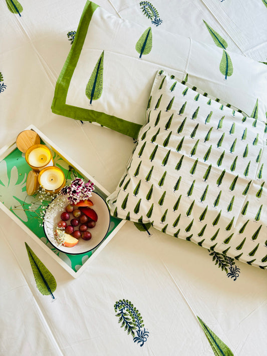 Greeen Cyprus Handblock Printed Cotton Bedsheet