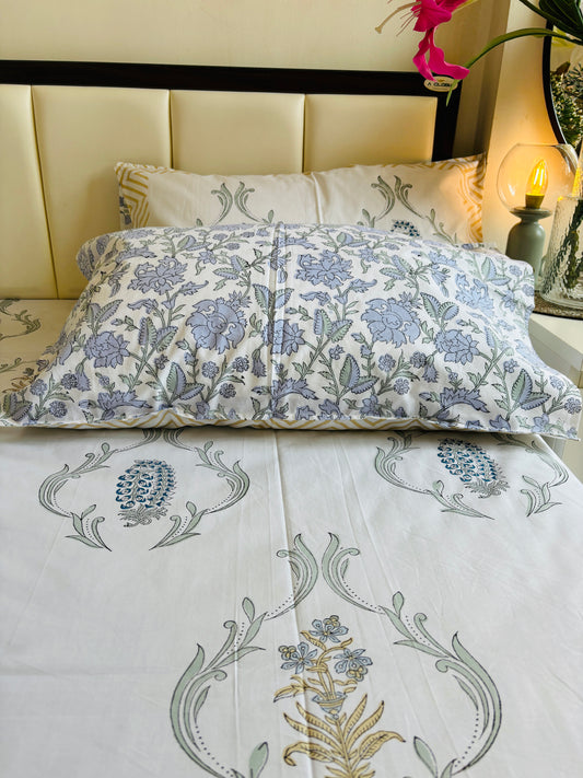 Balmy Seaside Hand Block Printed Cotton Bedsheet