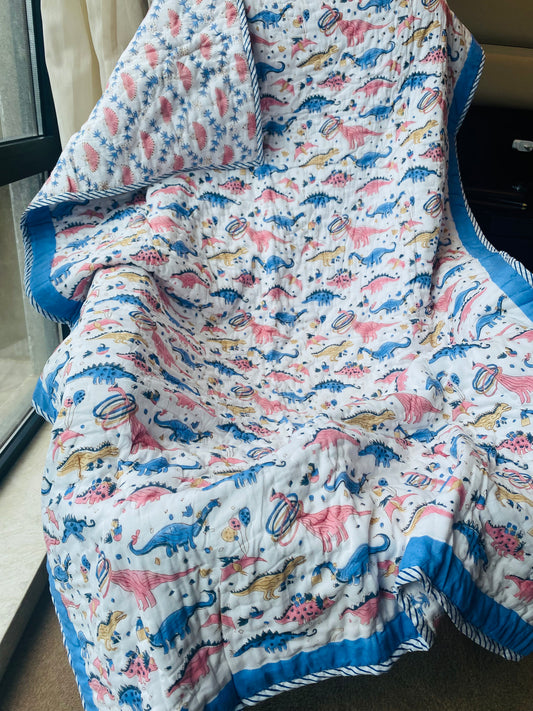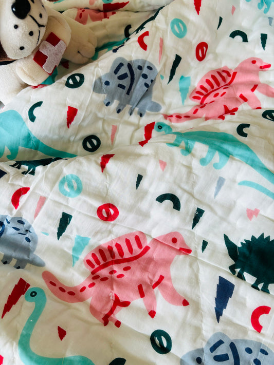 Organic Mulmul Cotton Baby Quilt | Dino tales