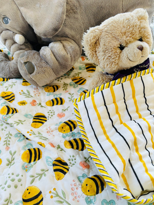 Organic Mulmul Cotton Baby Quilt | Honey bee