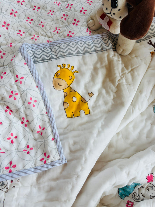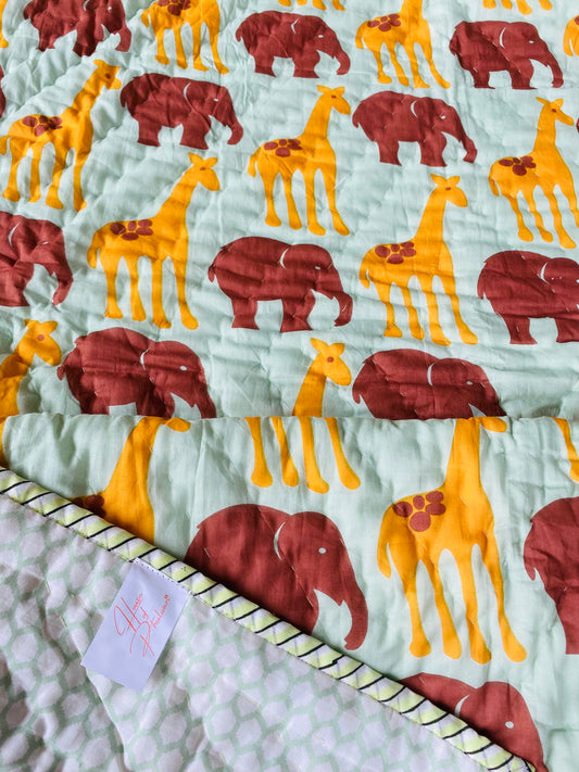 Organic Mulmul Cotton Baby Quilt | Elephant-Giraffe Friendship