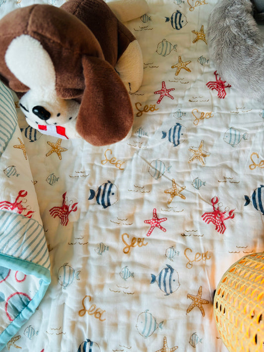 Organic Mulmul Cotton Baby Quilt | Seafarer