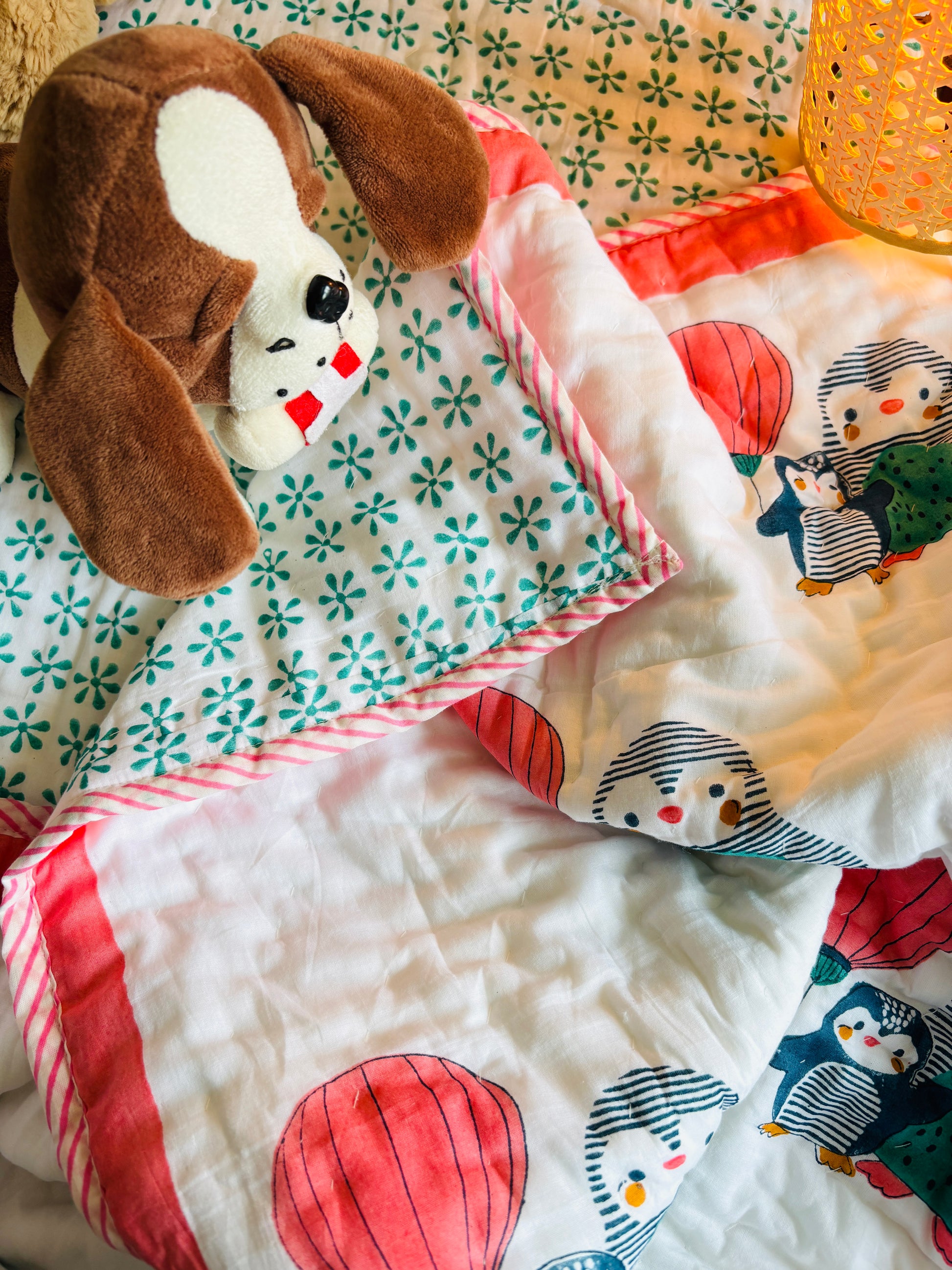 Organic Mulmul Cotton Baby Quilt | Pingu
